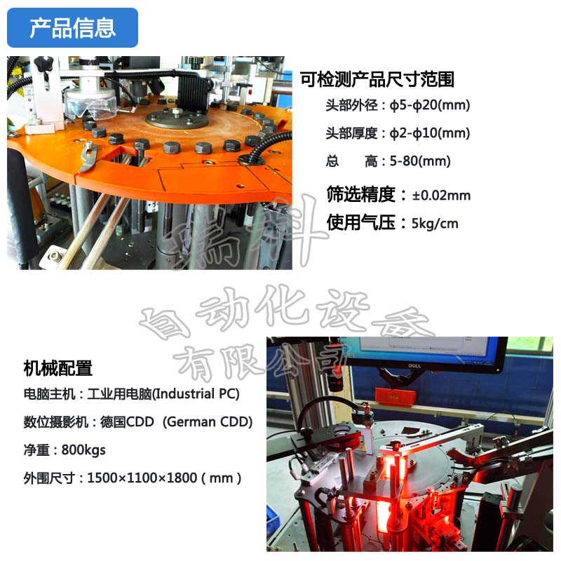 硬體配備包含振動送料機、下料軌道、檢驗平台、計算機係統為一安全、便利,且節省人力成本的自動化設備。分別介紹如下: