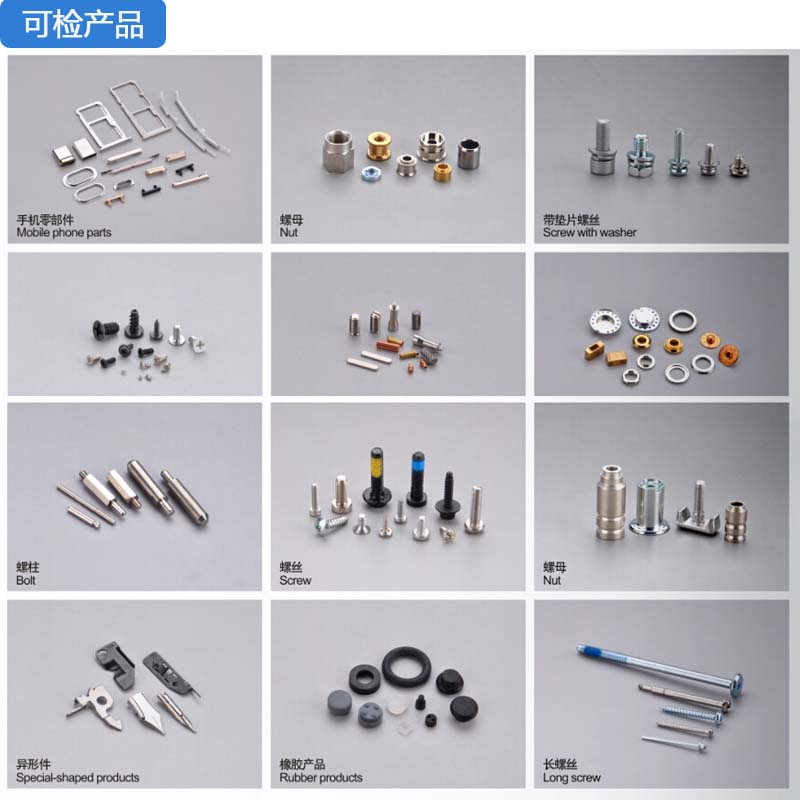 硬體配備包含振動送料機、下料軌道、檢驗平台、計算機係統為一安全、便利,且節省人力成本的自動化設備。分別介紹如下: