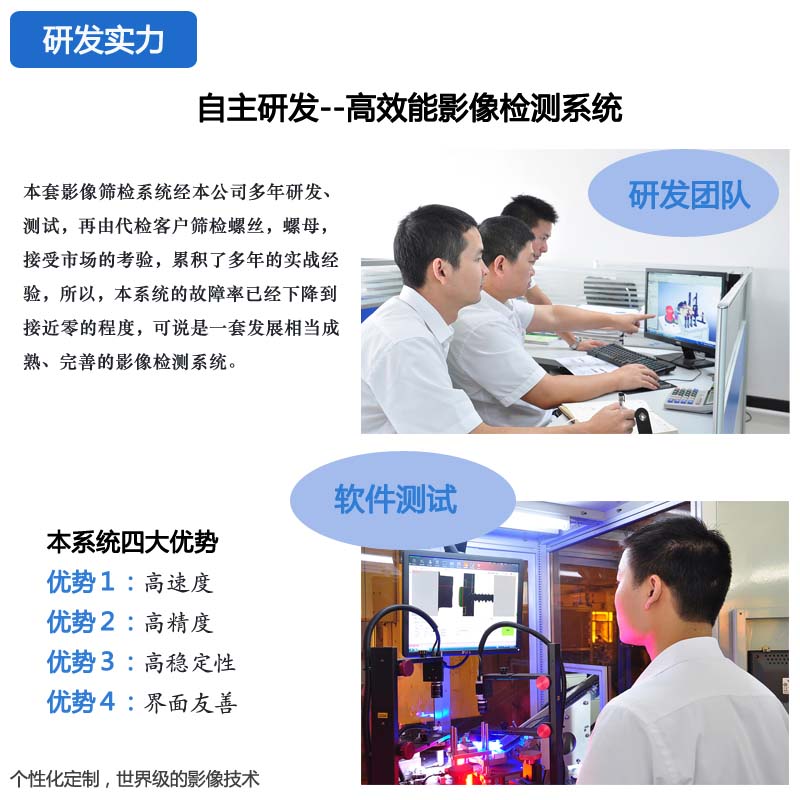 設備檢測範圍寬:可以檢測螺絲、螺母、手機零配件、汽車配件、航空緊固件、塑膠產品、磁芯產品等。