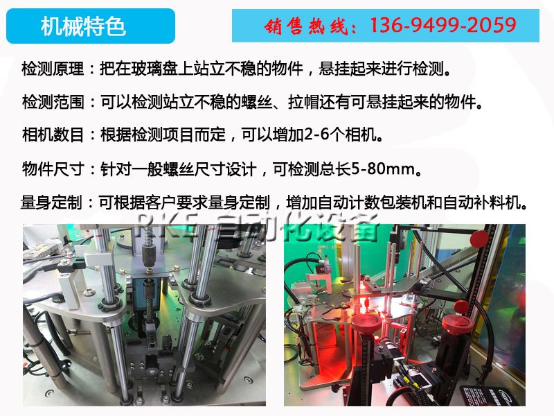 分度盤篩選設備檢測墊片螺絲,把在玻璃盤上站立不穩的物件,懸掛起來進行檢測。檢測範圍廣,速度快,精度高
