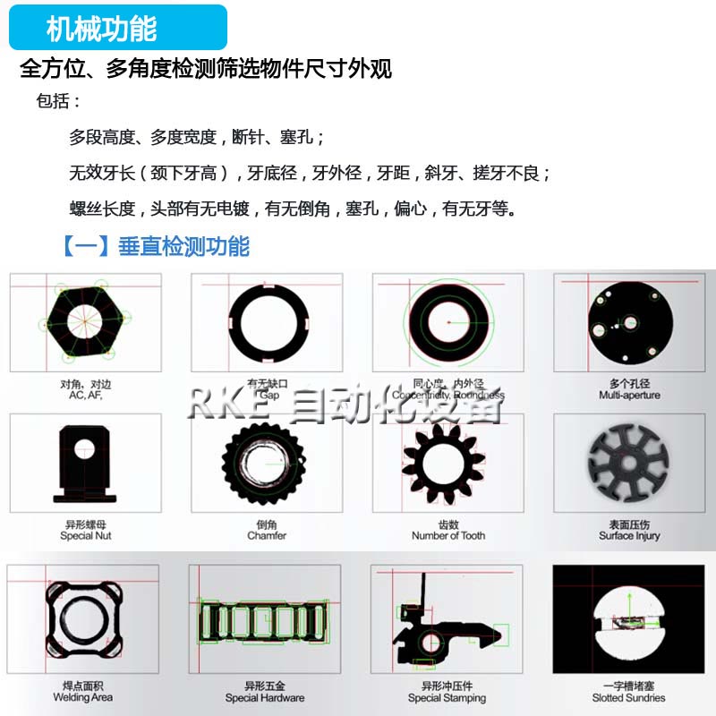 主要是檢測螺母多段高度、多段寬度、總長、內孔徑、孔內毛刺、檢測牙紋等。 |